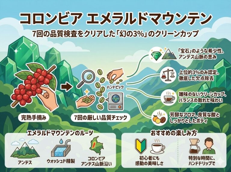 エメラルドマウンテンは、コロンビアコーヒーの頂点に立つ幻の3% 。