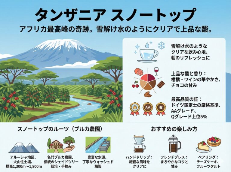 スノートップは、アフリカ最高峰キリマンジャロの雪にちなむ、タンザニア最高級品質のブランドです。