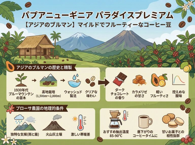 ブルーマウンテンと同じ苗木を使っていることから、アジアのブルマンと言われています。華やかな香り、マイルドでコクがあり、飲みやすいコーヒーです。