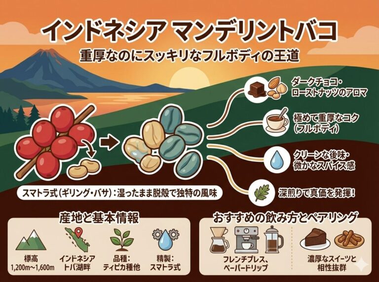 トバ火山の肥沃な土壌とスマトラ式精製が育んだ銘柄です 。