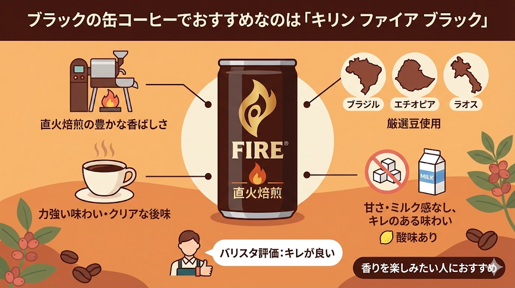 ブラックの缶コーヒーでおすすめなのは「キリン ファイア ブラック」