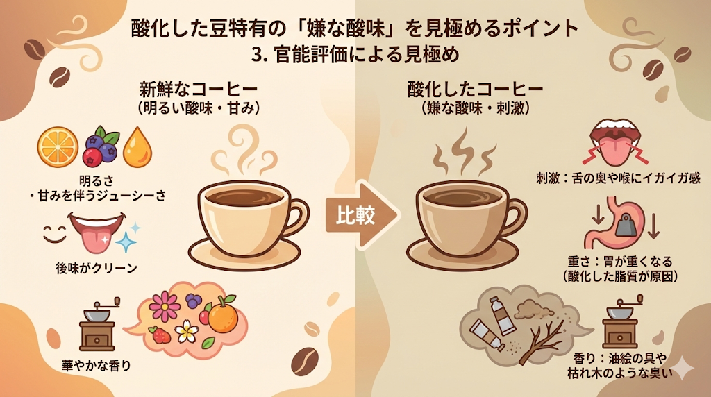 酸化した豆特有の「嫌な酸味」を見極めるポイント