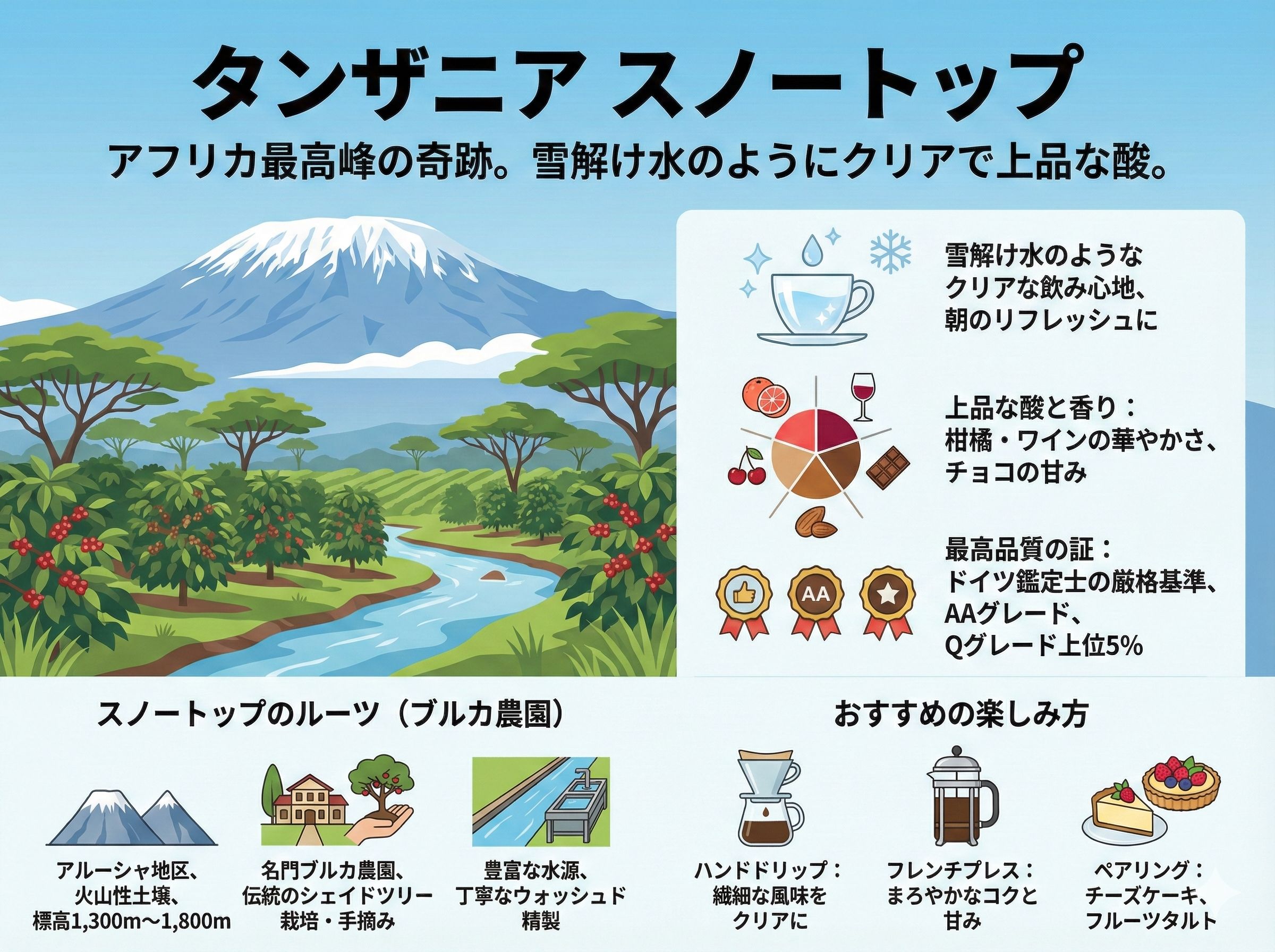 このタンザニア スノートップを一口飲めば、